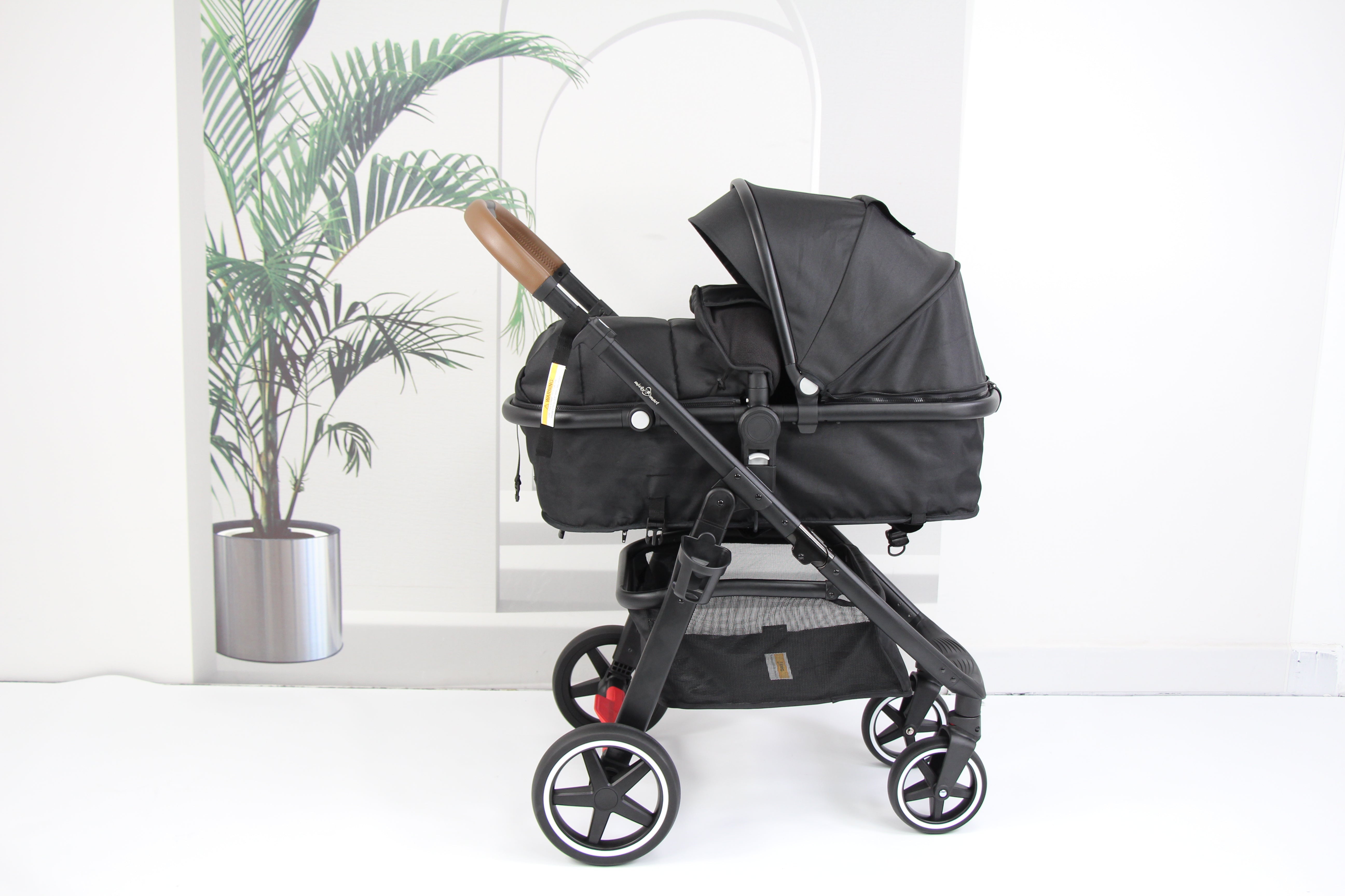 Micky Mart Baby Pram / Stroller 2 in 1 Convertible Bassinet Leather Handle -Black